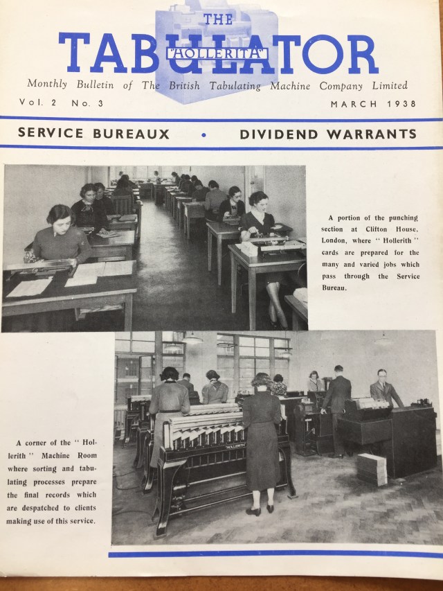 The Tabulator magazine was first published by BTM in 1937. It was described as a “monthly bulletin” for customers and contained examples of how tabulators were being used, news of product developments and details of exhibitions, such as the Business Efficiency Exhibitions, where the machines could be seen demonstrated. In the early days it had a lighthearted tone and featured cartoons and spoof articles. Different departments were featured to advertise the breadth and depth of BTM’s international offering. The whole magazine is peppered with unconscious sexism – women are anonymously showing off the machines, or diligently keying in data, whilst the named men are directing, managing and showing VIPs around the factory.